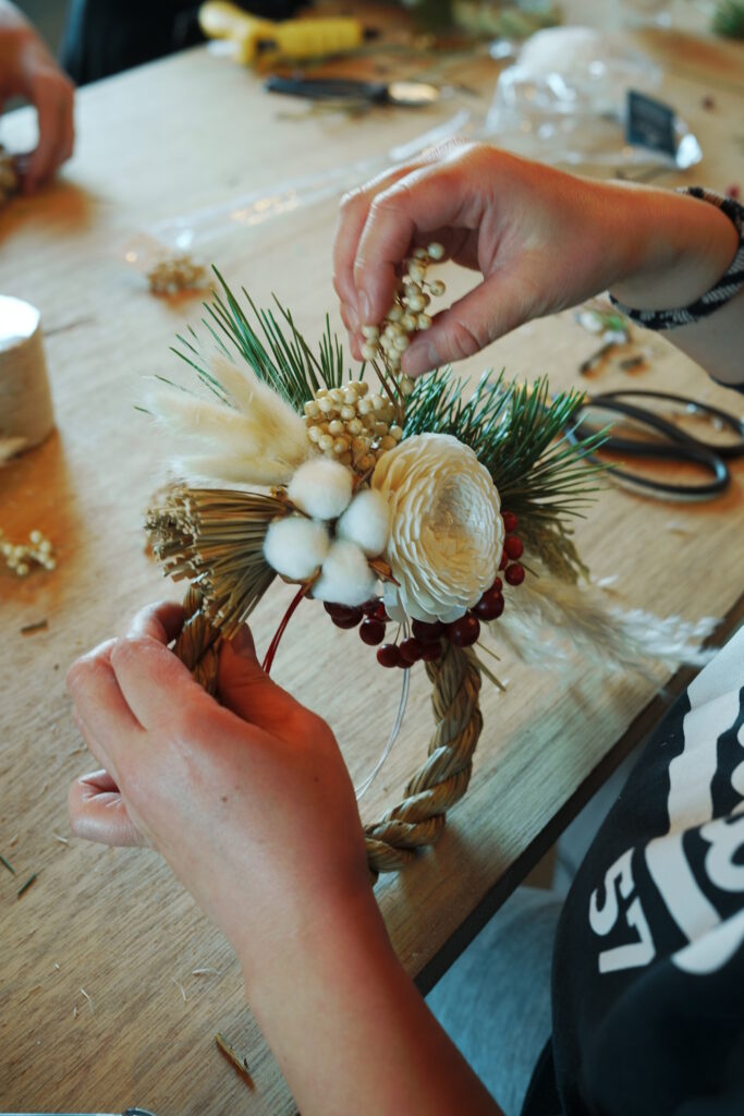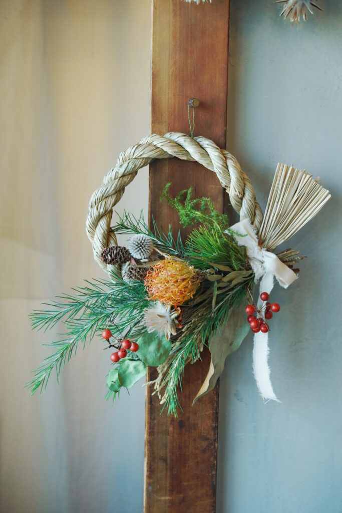 年の締めくくりに、年の初めにハナムスビで制作した、しめ飾りを飾りましょう🌿